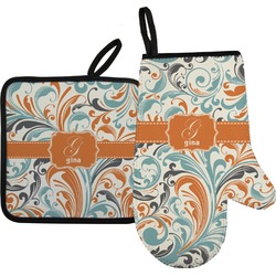 Orange & Blue Leafy Swirls Neoprene Oven Mitt