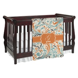 Orange & Blue Leafy Swirls Baby Blanket (Personalized)