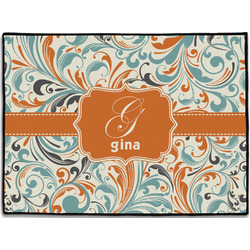 Orange & Blue Leafy Swirls Anti-Fatigue Kitchen Mat (Personalized)