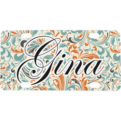 Orange & Blue Leafy Swirls Mini/Bicycle License Plate (Personalized)