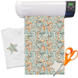 Orange & Blue Leafy Swirls Heat Transfer Vinyl Sheet (12"x18")