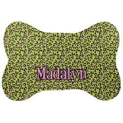 Pink & Lime Green Leopard Bone Shaped Dog ID Tag (Personalized)