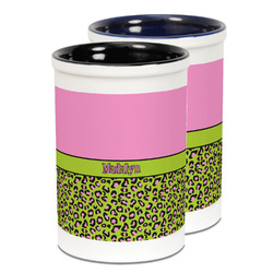 Pink & Lime Green Leopard Ceramic Pencil Holder - Large