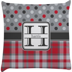 Red & Gray Dots and Plaid Pillow Case (Personalized)
