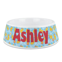 Rubber Duckies & Flowers Ceramic Dog Bowl (Personalized)