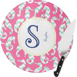 Sea Horses Round Glass Cutting Board (Personalized)