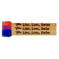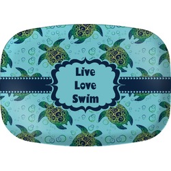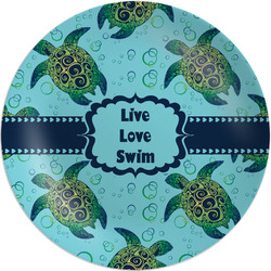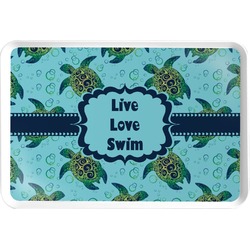 We chose a calming teal for the entire background, navy blue for the turtles background color along with a navy blue ribbon and label. We chose the hearts ribbon, a fancy label and live, love swim for personalization in the hearts font