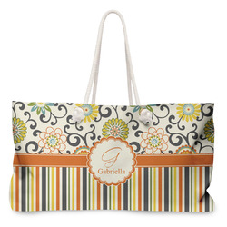 Swirls, Floral & Stripes Large Tote Bag with Rope Handles (Personalized)