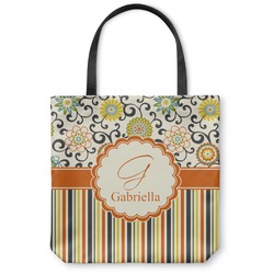 Swirls, Floral & Stripes Canvas Tote Bag (Personalized)