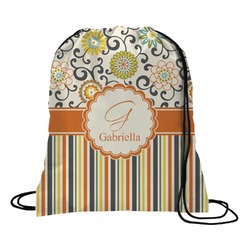 Swirls, Floral & Stripes Drawstring Backpack (Personalized)