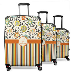Swirls, Floral & Stripes 3 Piece Luggage Set - 20" Carry On, 24" Medium Checked, 28" Large Checked (Personalized)