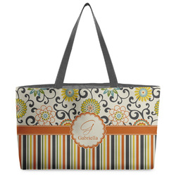 Swirls, Floral & Stripes Beach Totes Bag - w/ Black Handles (Personalized)