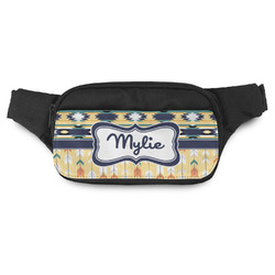 This fun, tribal design features stitched multicolored horizontal stripes on the top, and vertical arrows across the bottom. The two patterns are rather contradicting, but the overall effect is mesmerizing.