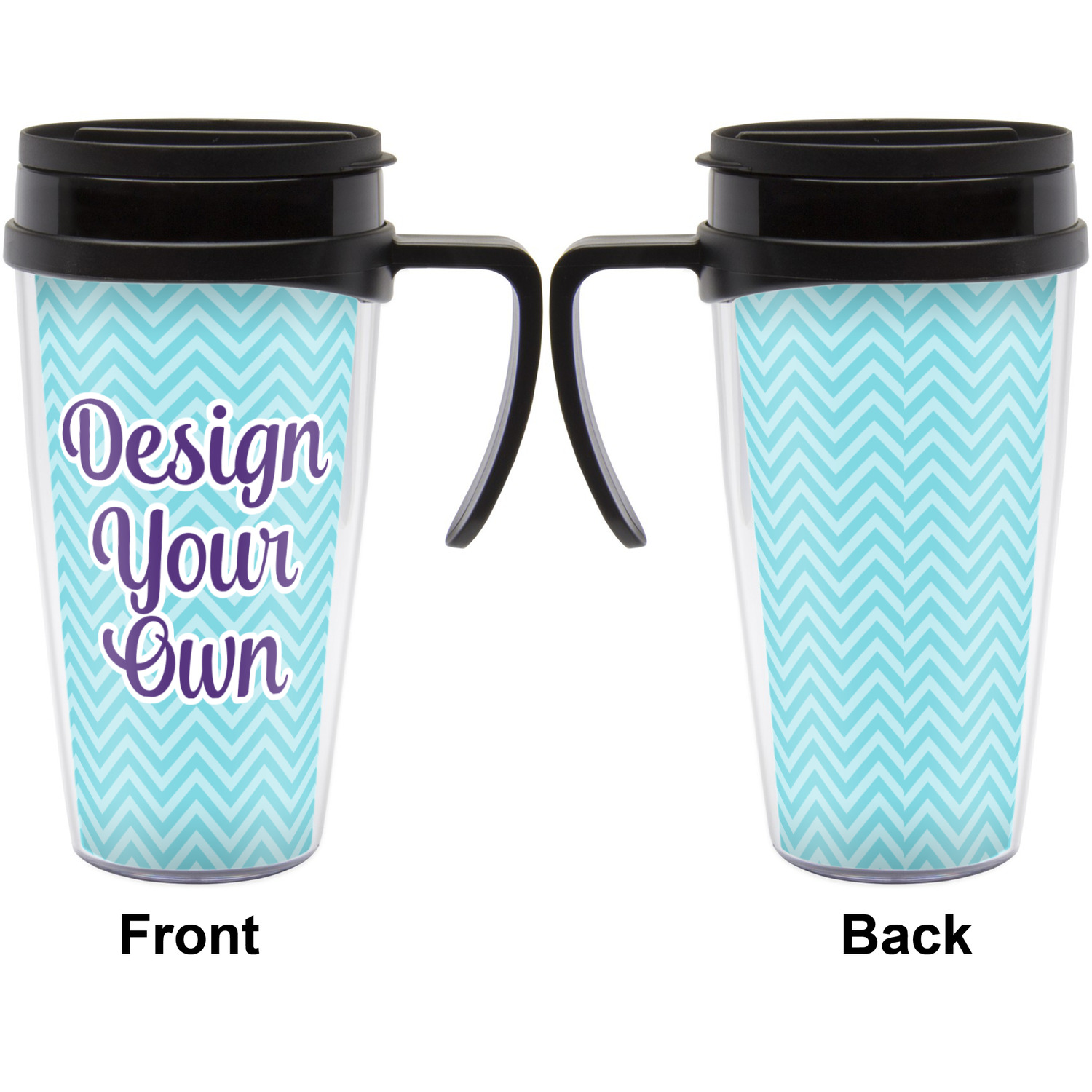 Keep your drink secure while on your daily commute with one of our personalized travel mugs! These travel mugs will add a splash of color and creativity to your kitchen counter-top, car cup holder, office desk, or wherever you choose to place them! With these custom mugs, you'll never have to settle for a boring, run-of-the-mill travel mug.