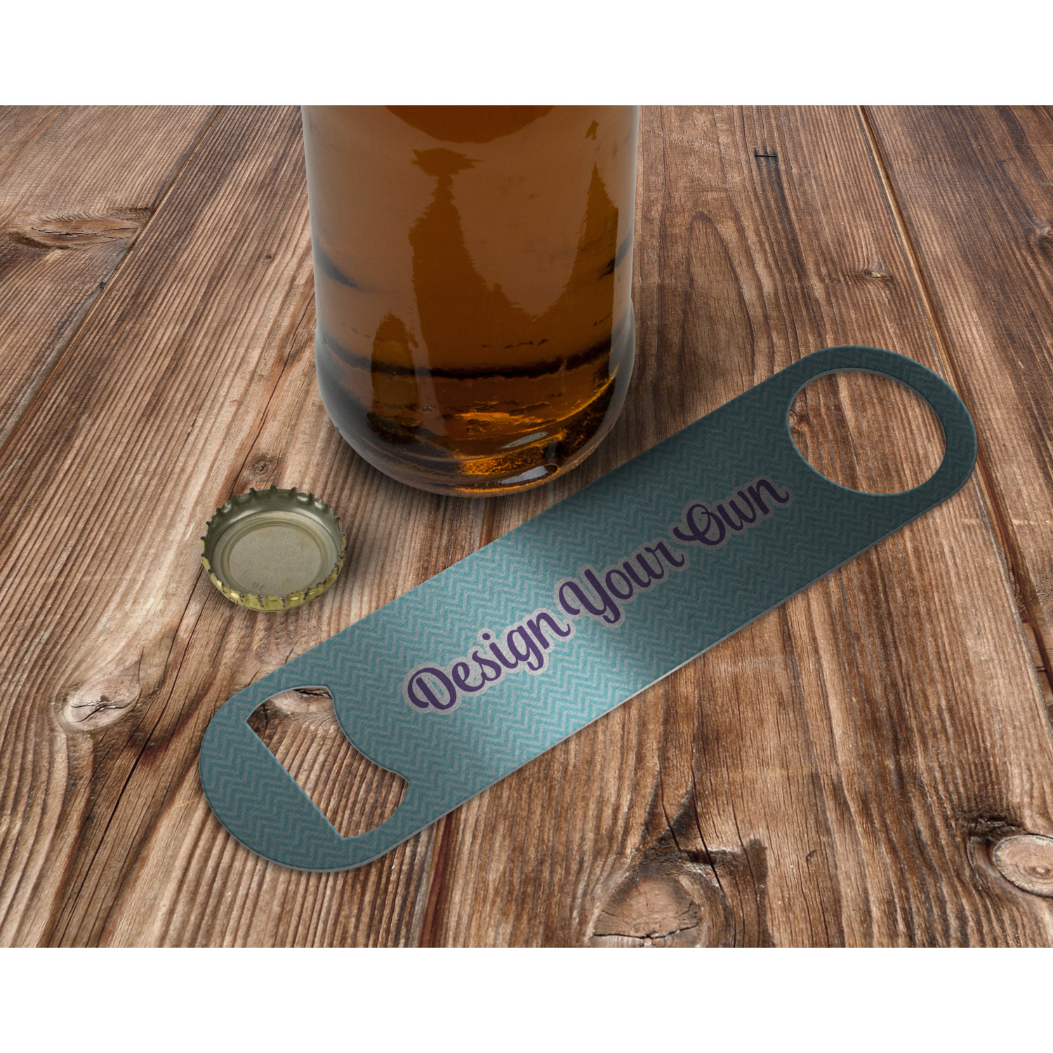 Stop struggling with the caps or your bottled beverages by purchasing one of our personalized bottle openers! These wrench-like custom bar blades are built to last. Customize one for your home's bar, or as a practical gift for a loved one!