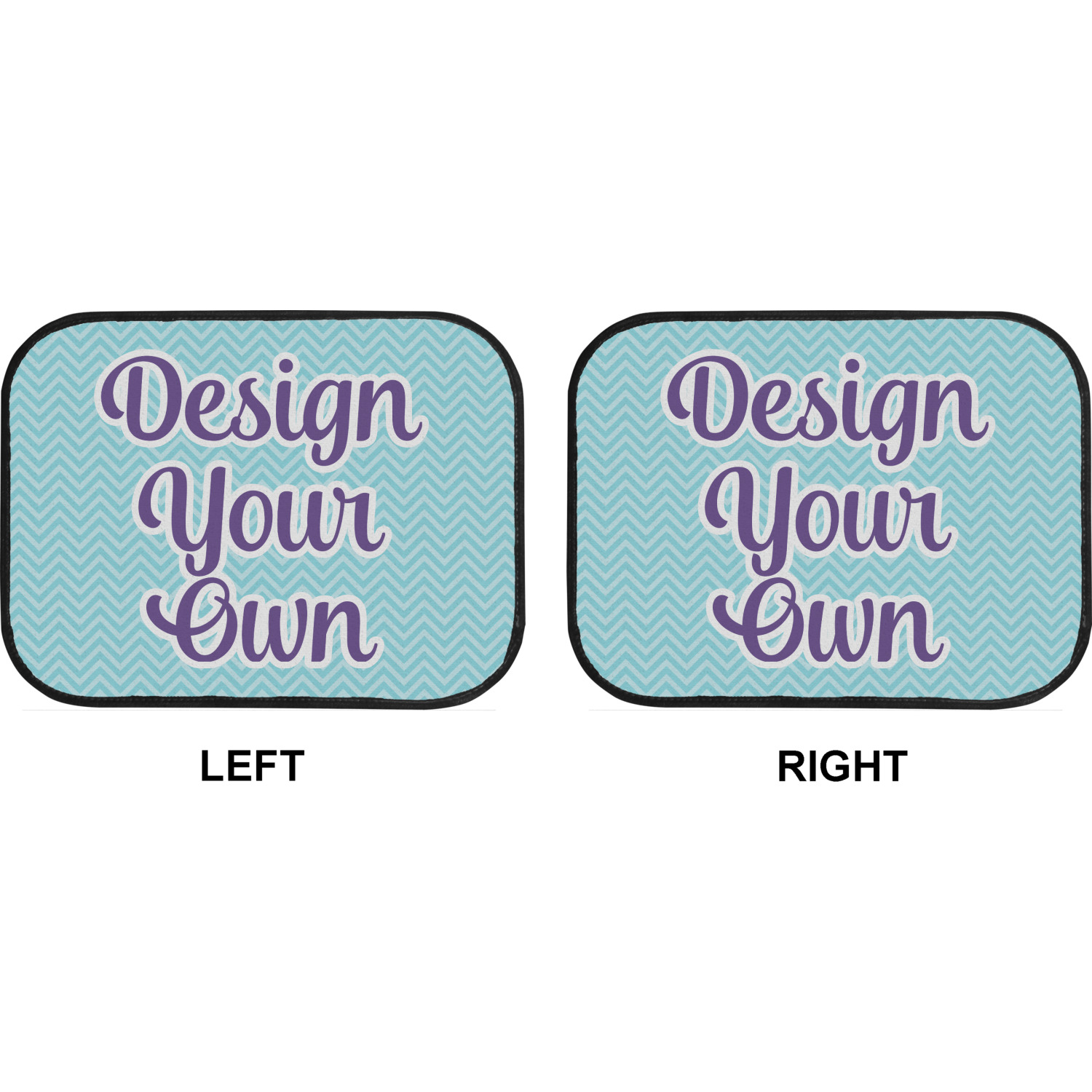 We craft our auto floor mats mats from polyester, apply a black finish to the edges, and lined at the bottom to prevent slippage. These mats protect your floors from grass, mud, and any accidental spills. We display your personalized design on the front face of each mat. The sizes of these car floor liners are standardized to provide a versatile fit for all vehicles. The front rows car mats measure at 17 by 26.5 inches, while the back rows measure at 17 by 13 inches. We sell three packages of car floor mats. You can purchase a pair of front row car mats, a pair of back row car mats, or a set of front row and back row car mats. To make an informed purchase, we recommend measuring the surface area of your car floors.