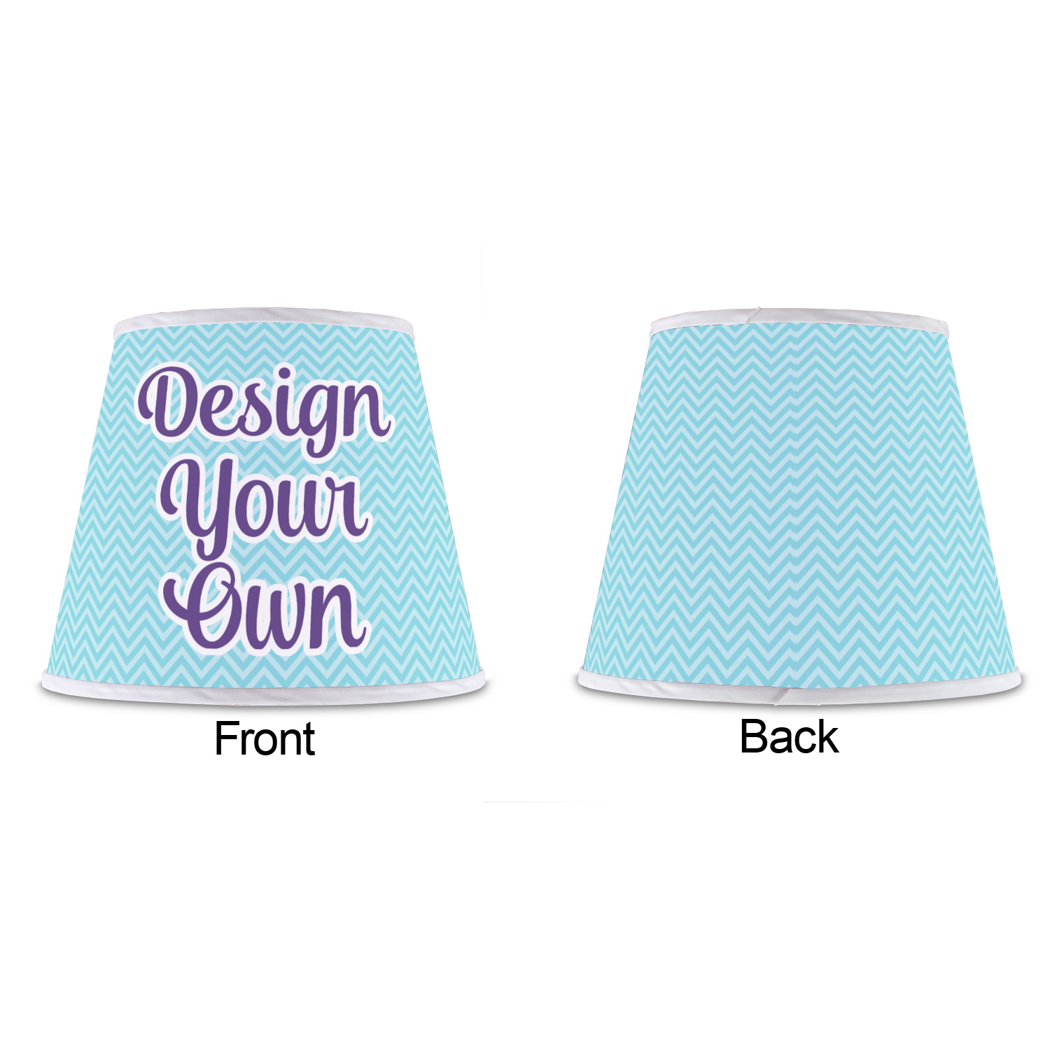 The base of this lampshade is 12 inches in diameter, and the top spans 8 inches in diameter. The total height of the lampshade is 10 inches. The angled nature of this custom lampshade concentrates the light, making it ideal for smaller spaces. This lampshade is made of matte, polyfilm, and displays your customization in its middle. The top and bottom of this colorful lamp shade are lined with a white fabric ribbon (which can be replaced with black inside the design studio) which frames your design and creates a sophisticated finish. As an UNO fitter lampshade, this unique lamp shade will fit a variety of bases.