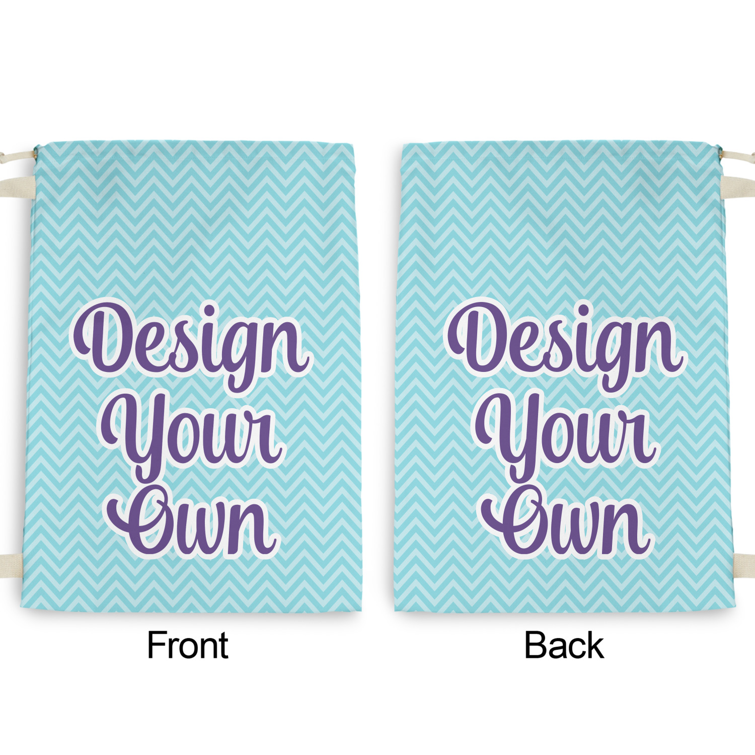 Carry your laundry in style with these customized laundry bags. Available in two sizes, featuring a natural colored woven strap and a cinch cord, these bags hold a lot of clothes or anything else you want to fit in them.