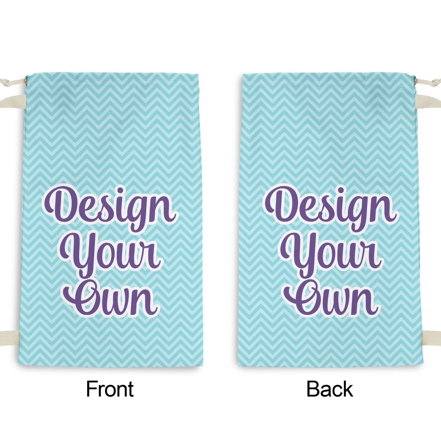 Carry your laundry in style with these customized laundry bags. Available in two sizes, featuring a natural colored woven strap and a cinch cord, these bags hold a lot of clothes or anything else you want to fit in them.