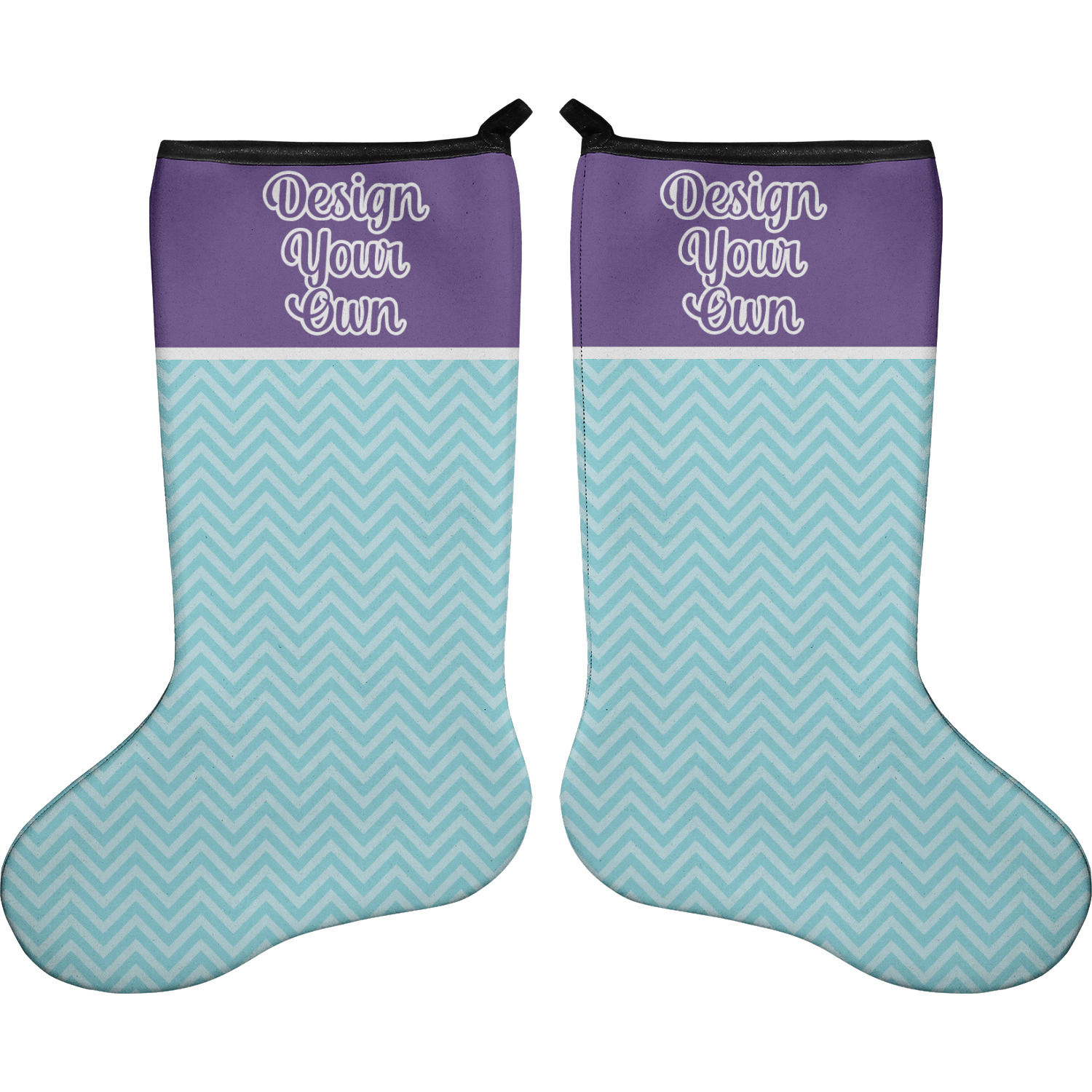 These 17" x 11" stockings are made of neoprene and have a black trim to give them a fantastic finished look. Your very own design is printed right onto the stocking, either single sided with white on the back or double sided where can use the same or different designs / patterns on the front and the back - the choice is yours. At the top of the stocking is a 2" loop for hanging.