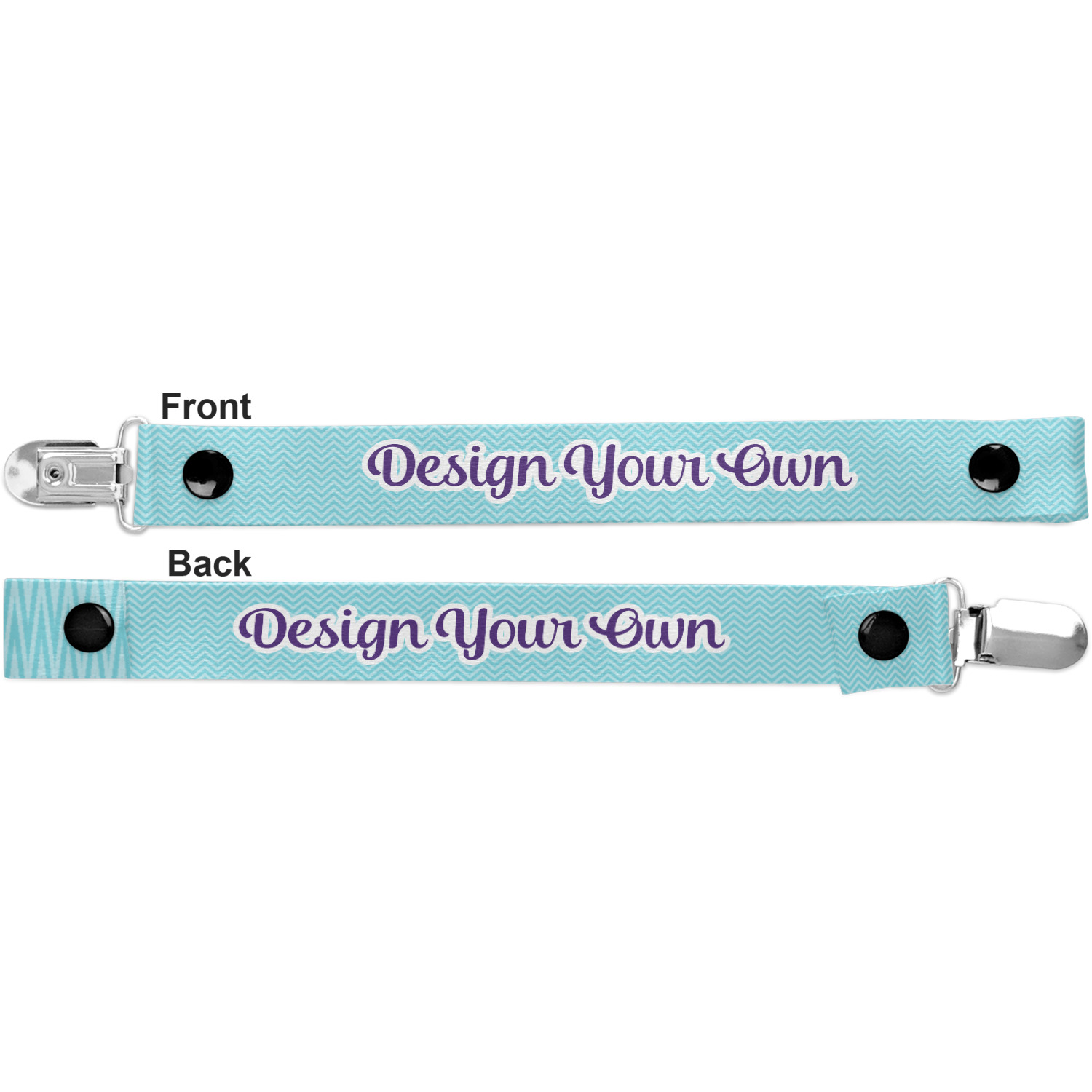 This personalized pacifier clip is the ideal size and measures at approximately 7.5 inches in length, when either end is snapped closed. On one end, you'll find a snap button. This button of your baby's pacifier holder is what can be attached to their pacifier to hold is securely in place. Simply open the snap, slip it through the pacifier opening, and snap it back into place. On the opposite end of this baby pacifier holder, you'll find a metal clip that can secure to a baby's collar or sleeve. This clip ensures that the strap stays in place, and that your baby's pacifier is always on hand.