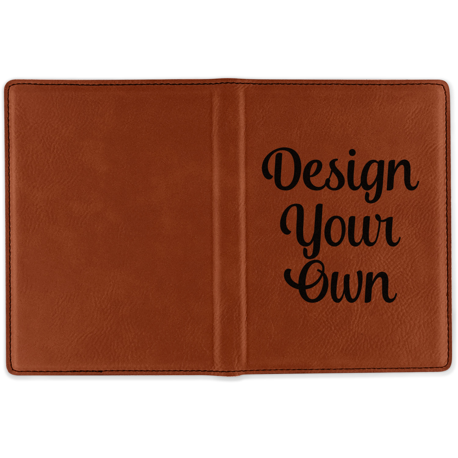 Although they are faux leather, these passport holders feel great in your hand. They are laser engraved either just on the front or the front and back. The image that is engraved onto your passport holder will be shades of black.