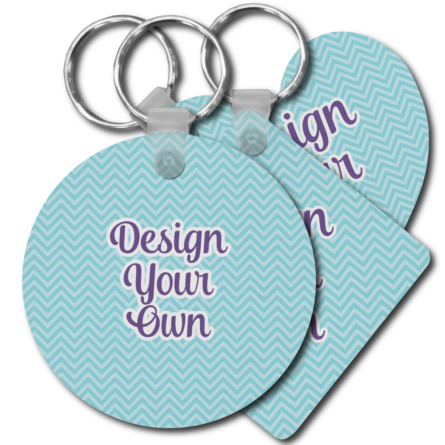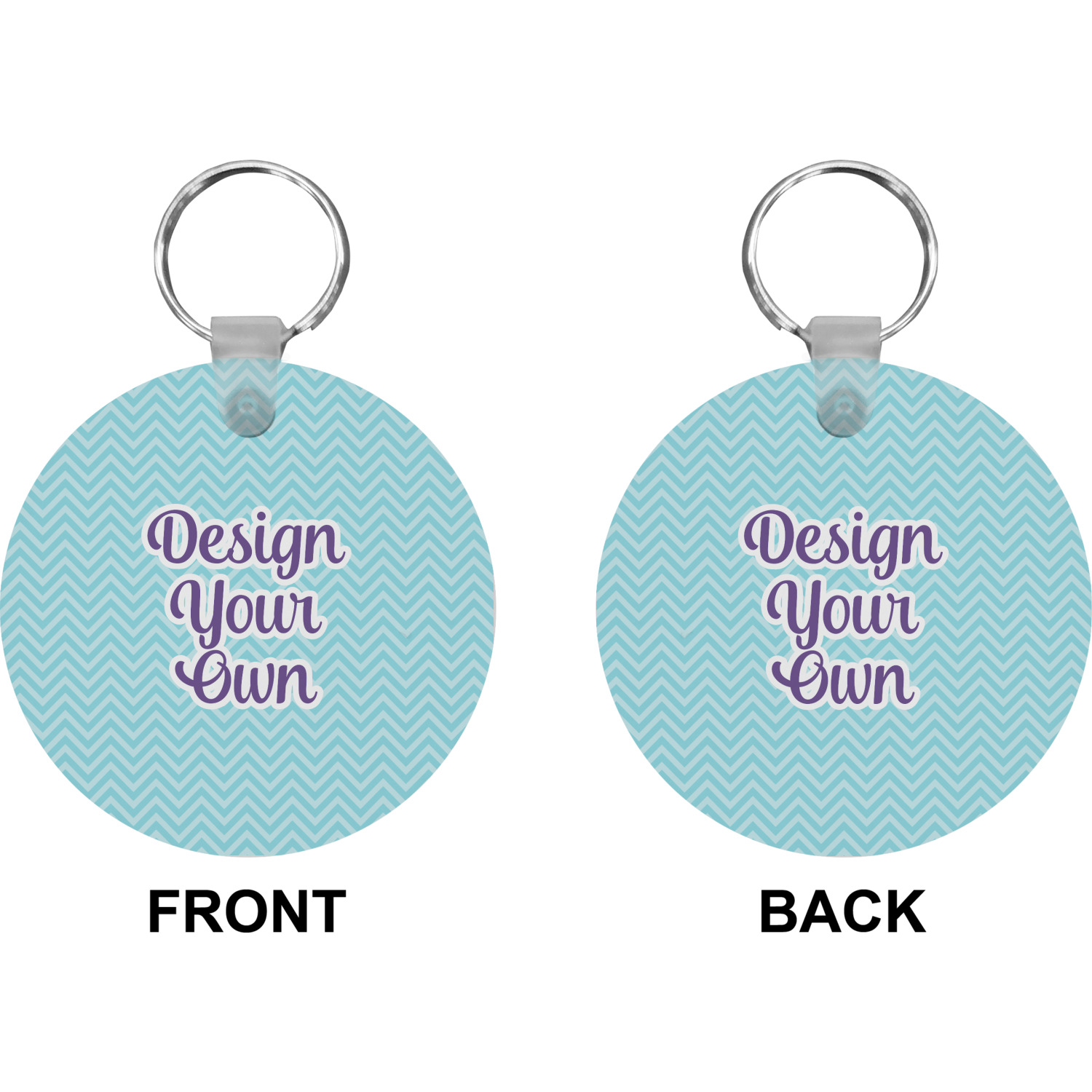 Our personalized keychains attach to the included metal, split key ring with a plastic, removable snap. Since a metal ring is included with your purchase, you have the liberty to keep your keys together on the ring, with or without your unique keychain. We offer this keychain in three different shapes: circle, heart, or diamond. We print your personalized design(s) on both sides of the key chain, and the surface has a glossy, reflective finish that only emphasizes your design. Each keychain is approximately 2.25 by 2.25 inches.
