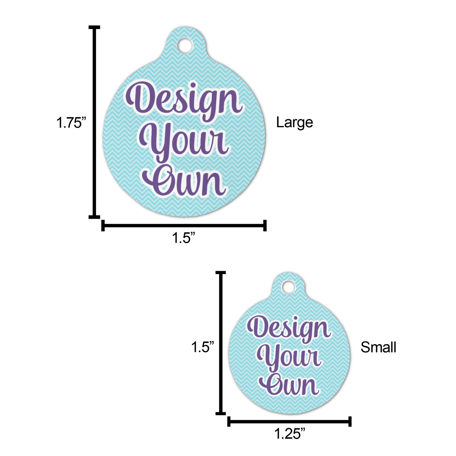 Go ahead; skip the monotony of plain pet ID tags with your very own, customized & personalized, round pet tag! This pet ID tag, fitting for both cats and dogs, will catch the eye of any onlooker (humans, canines, and felines, alike!) and accentuate your pet's individual personality.