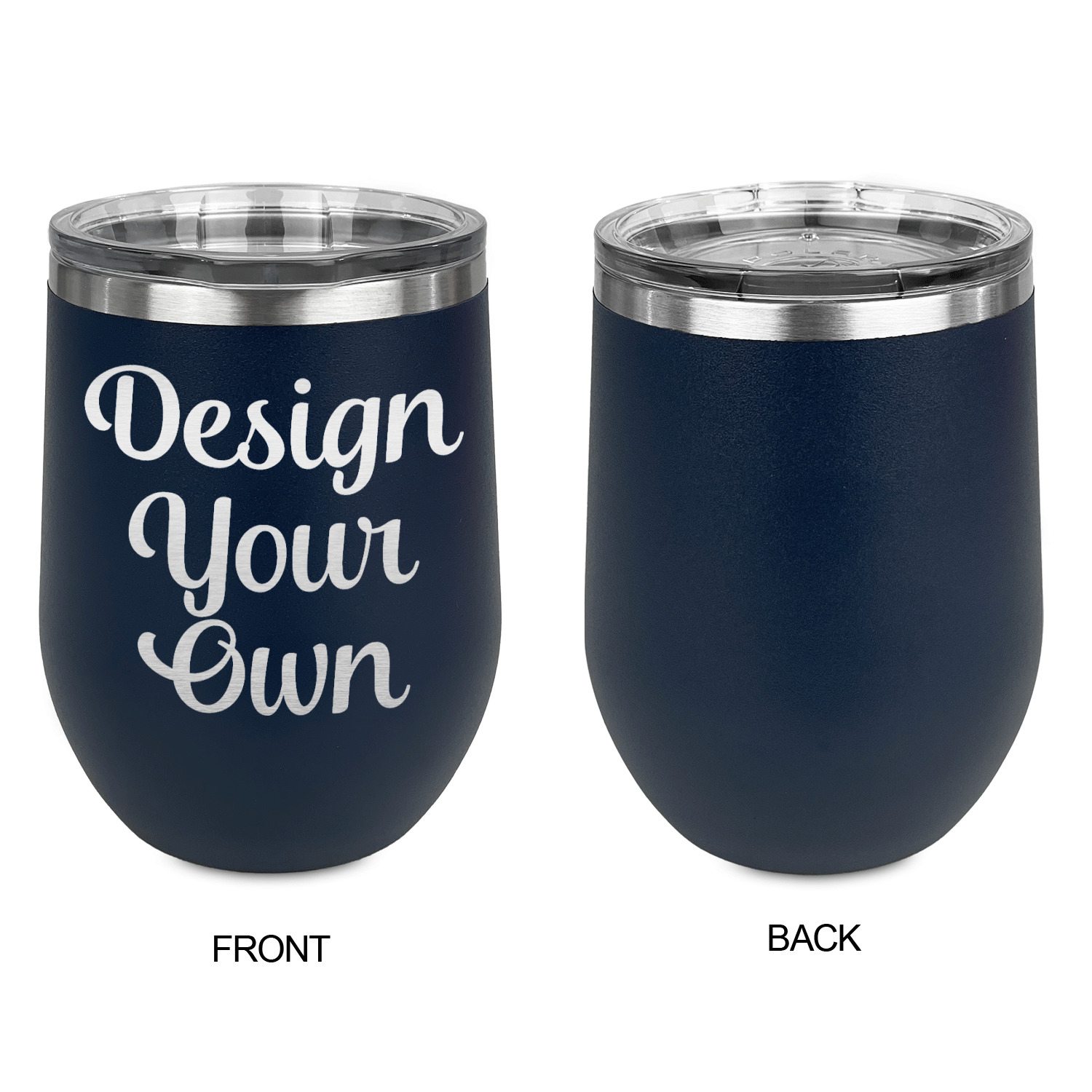 Design your wine tumbler with a cool graphic or quote. Even put your initials or monogram! These cups are laser engraved, which looks extra sharp on the metal tumbler.
