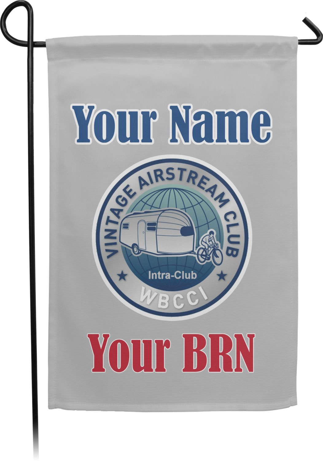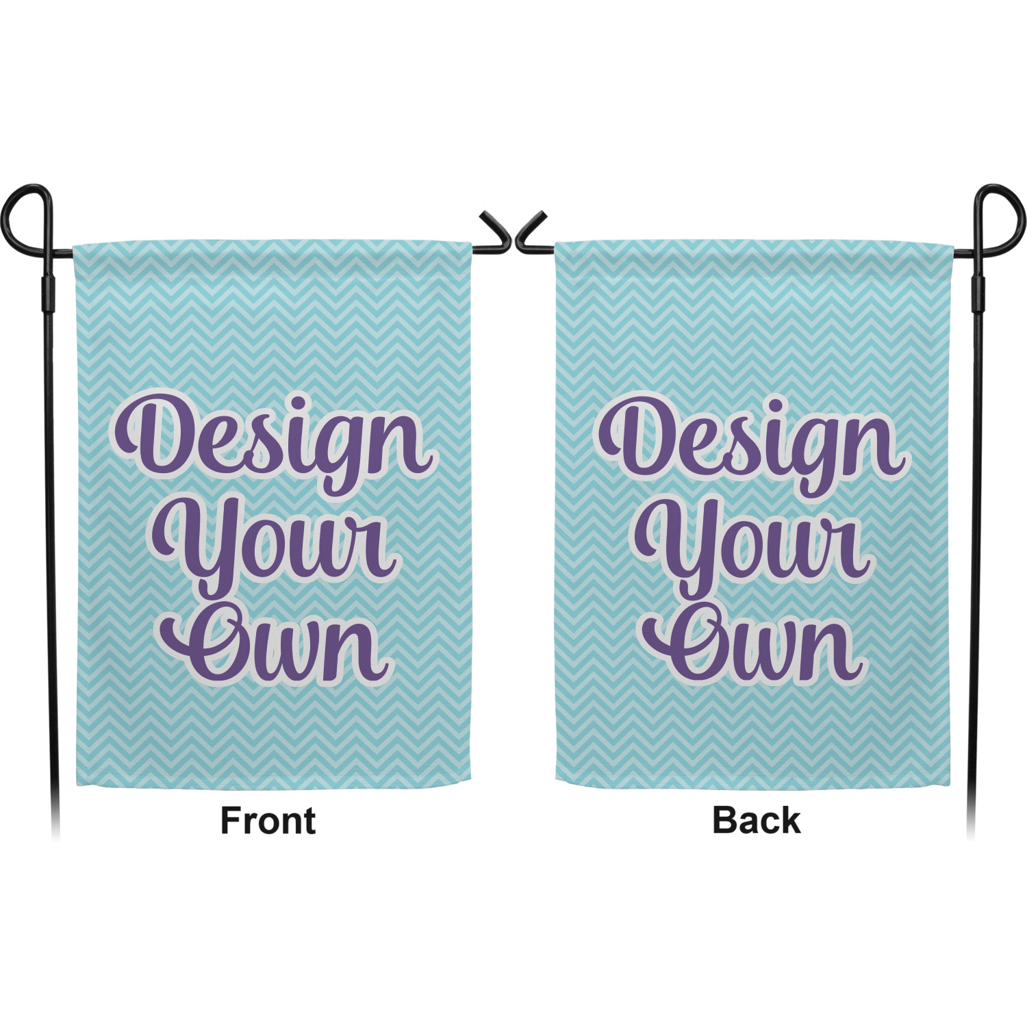 These custom garden flags are made of a durable, double-ply, polyester weave, allowing them to withstand the elements year round. The small flags measure at approximately 12 by 18 inches. The large flags measure out to 28 by 37 inches. You can order these decorative flags with your customization printed on the front only, or the front and back.