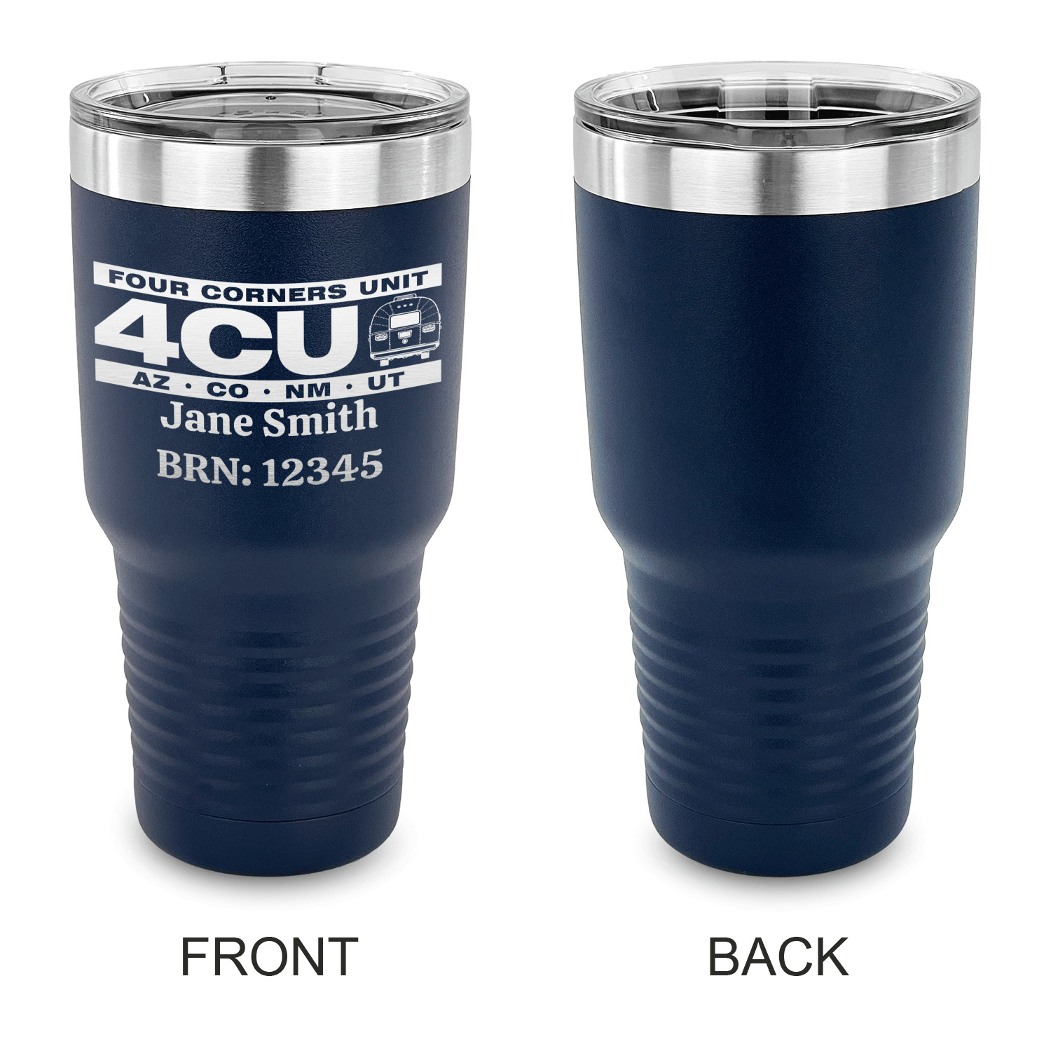 With the 5 colors - Black, Navy, Red, Pink and Coral, you are sure to find a cup to fit your personality. You can chose to engrave on the front or the front and back of the cup. Use our design studio to design your own cup and we laser engrave it for you.