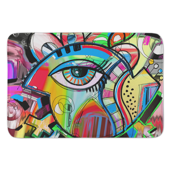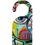 This design features a large abstracted eye in the center, surrounded by extremely vibrant, surrealistic shapes.