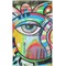 This design features a large abstracted eye in the center, surrounded by extremely vibrant, surrealistic shapes.