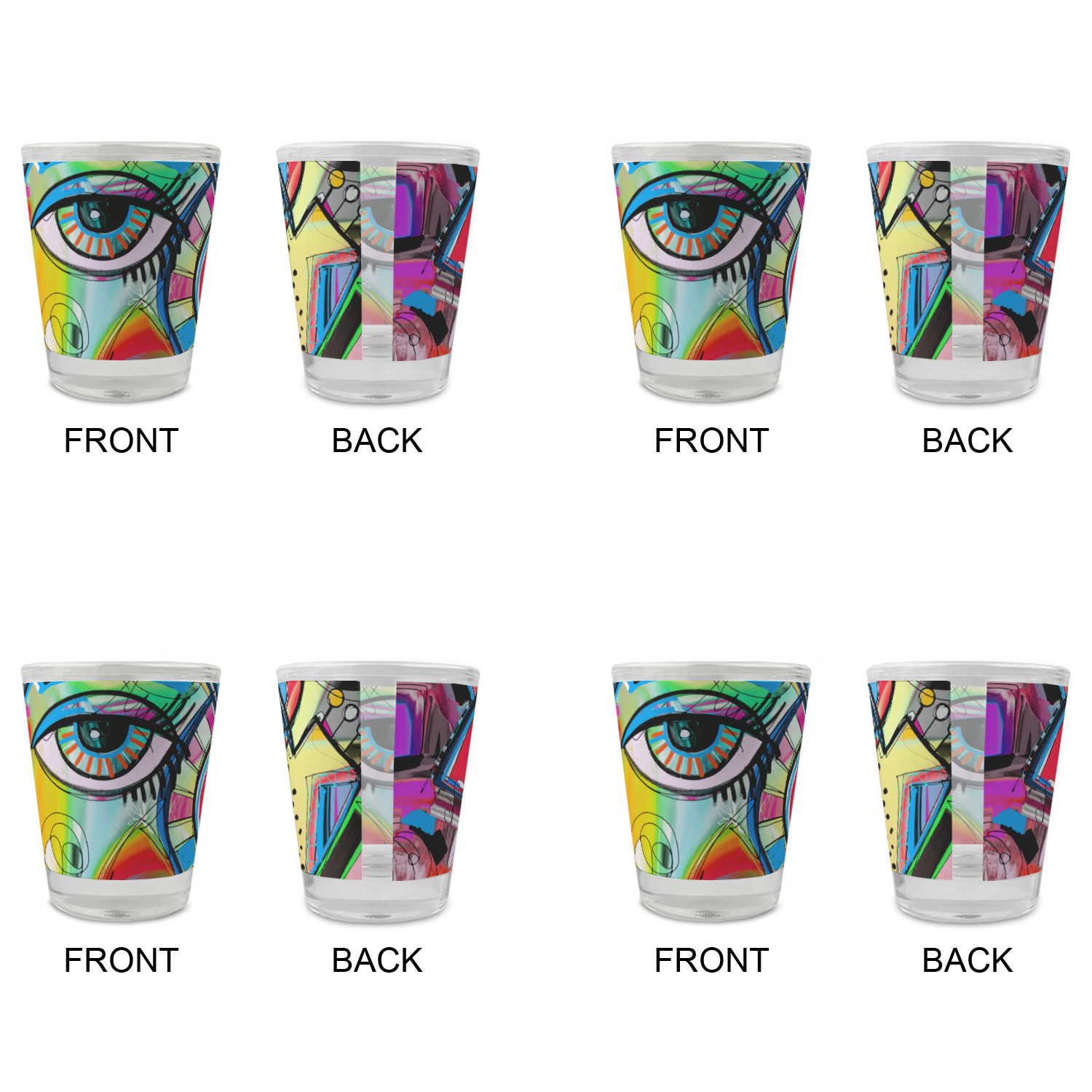 Made with frosted glass, these shot glasses are printed in full color with the design of your choice. They are a standard 1.5oz shot glass and are 2.4" tall. The print is wrapped around the shot glass in a full wrap and boldly displays your customization.