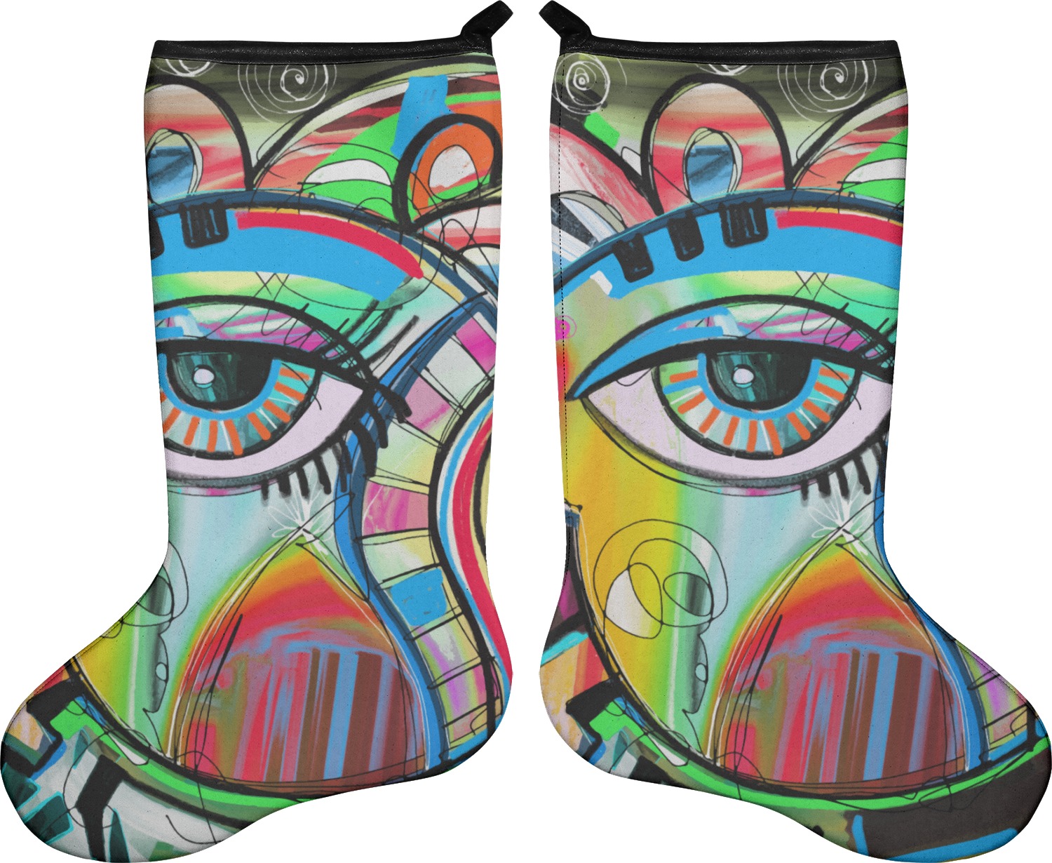 These 17" x 11" stockings are made of neoprene and have a black trim to give them a fantastic finished look. Your very own design is printed right onto the stocking, either single sided with white on the back or double sided where can use the same or different designs / patterns on the front and the back - the choice is yours. At the top of the stocking is a 2" loop for hanging.