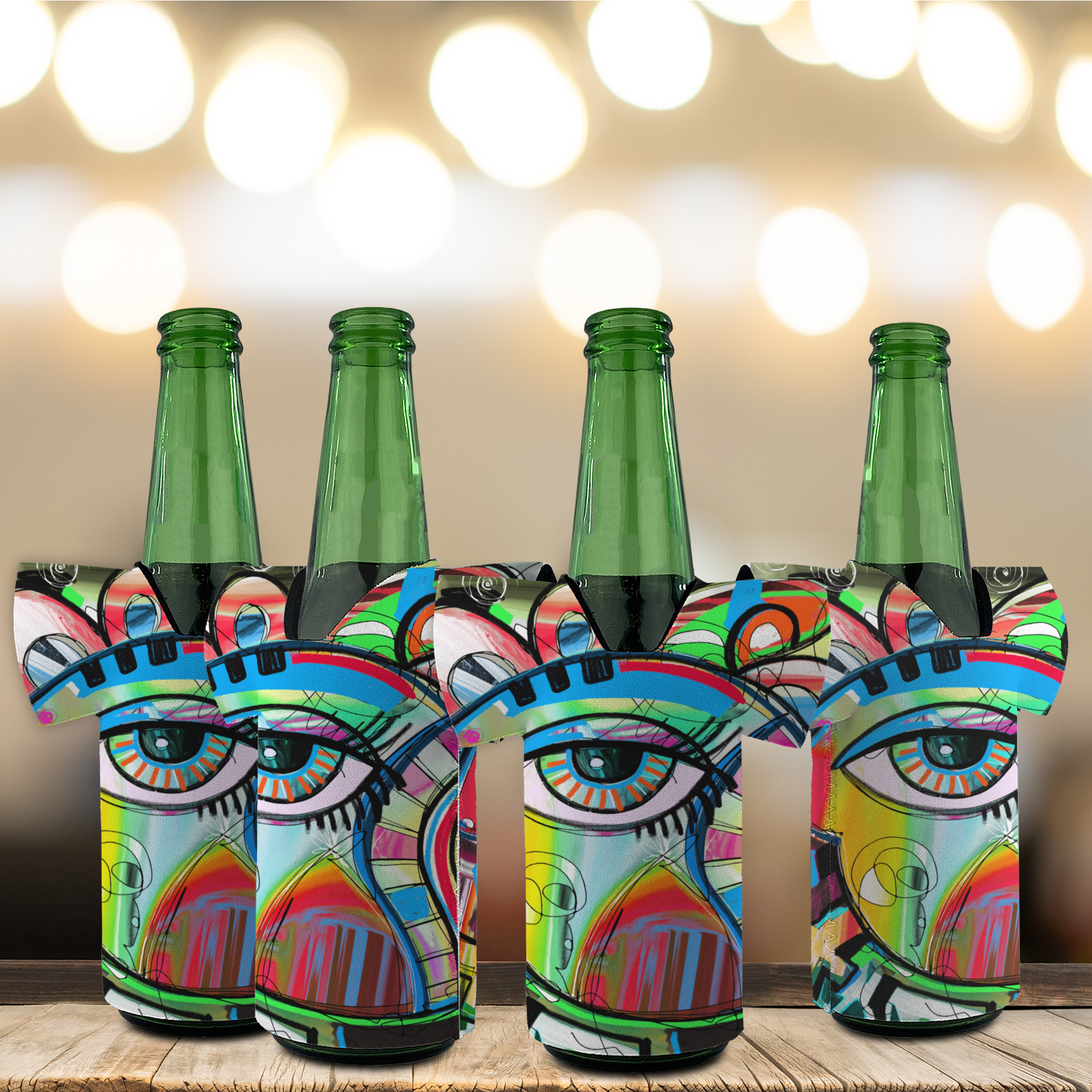 Fabricated from a thick, insulating neoprene, these custom can sleeve keep your drink cold, while proudly displaying your customization on all sides. These can sleeves are designed to fit most 12oz bottles. Available in two types - zipper cooler for insulating the full bottle or the jersey style for sports season. Also available as a single can sleeve or in a set of 4 for you to share with friends and family. For convenient storage, they can also be folded.