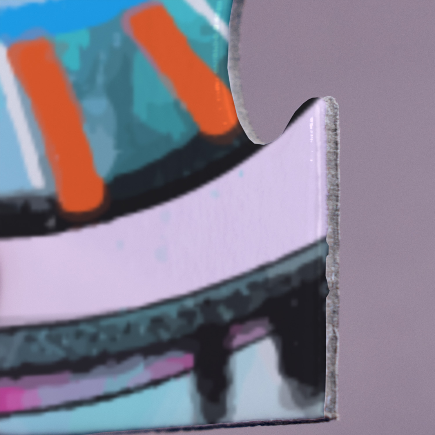 We print our puzzles on thick white chipboard in vibrant colors, then laminate the chipboard and die cut your puzzle. Your jigsaw puzzle is shipped to you in a box with the image of the puzzle on the box.