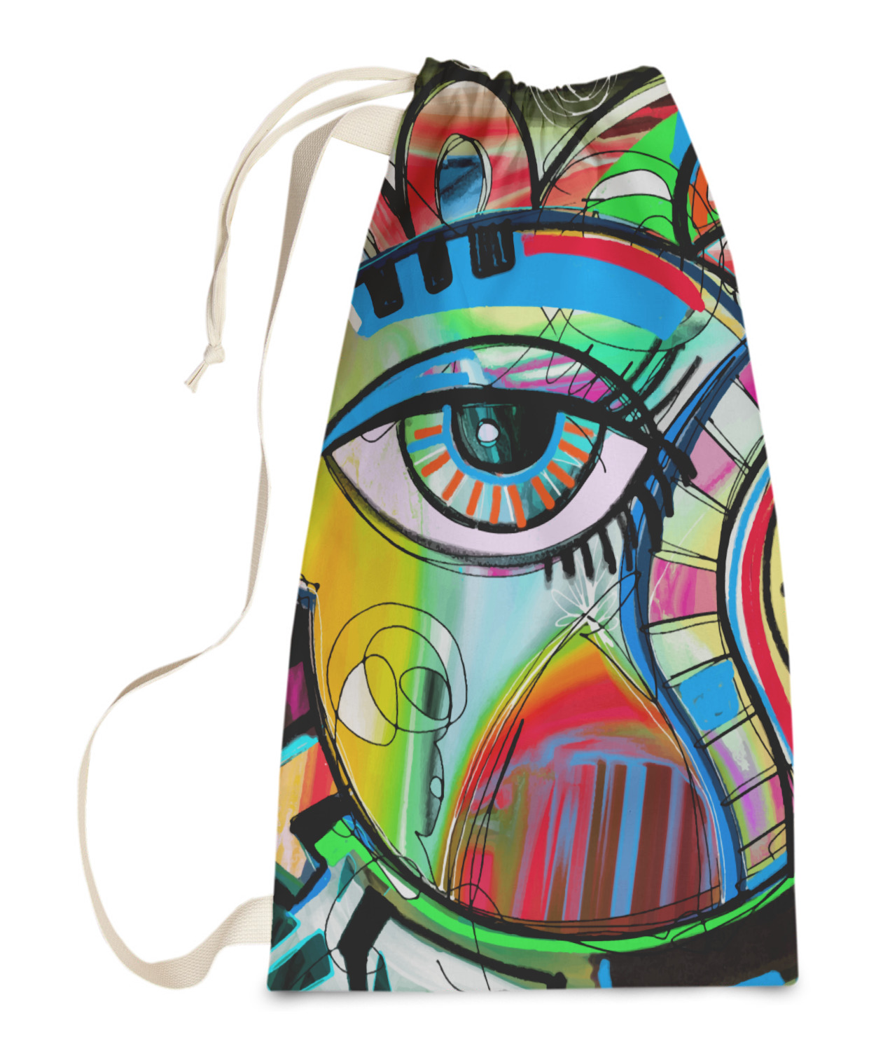Our laundry bags are handmade in the USA; The fabric is printed using dye sublimation. The fabric is then cut and the grommets are added for the drawstring closure. The laundry bag is then sewn and the drawstring is fed through and knotted to create the cinch closure.