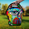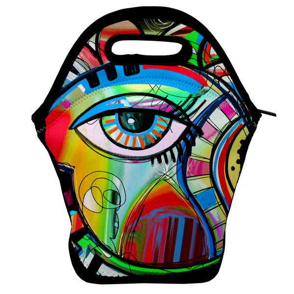 This design features a large abstracted eye in the center, surrounded by extremely vibrant, surrealistic shapes.