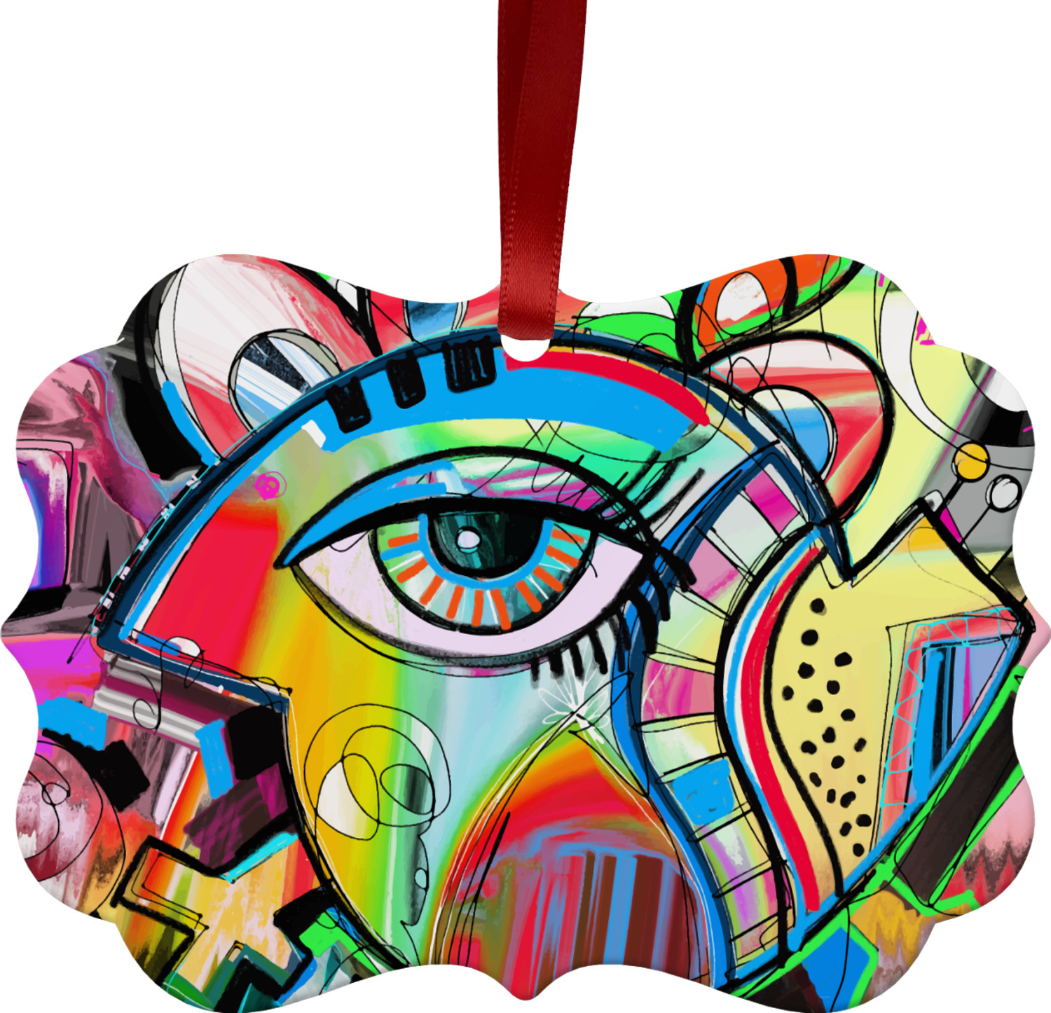 This design features a large abstracted eye in the center, surrounded by extremely vibrant, surrealistic shapes.