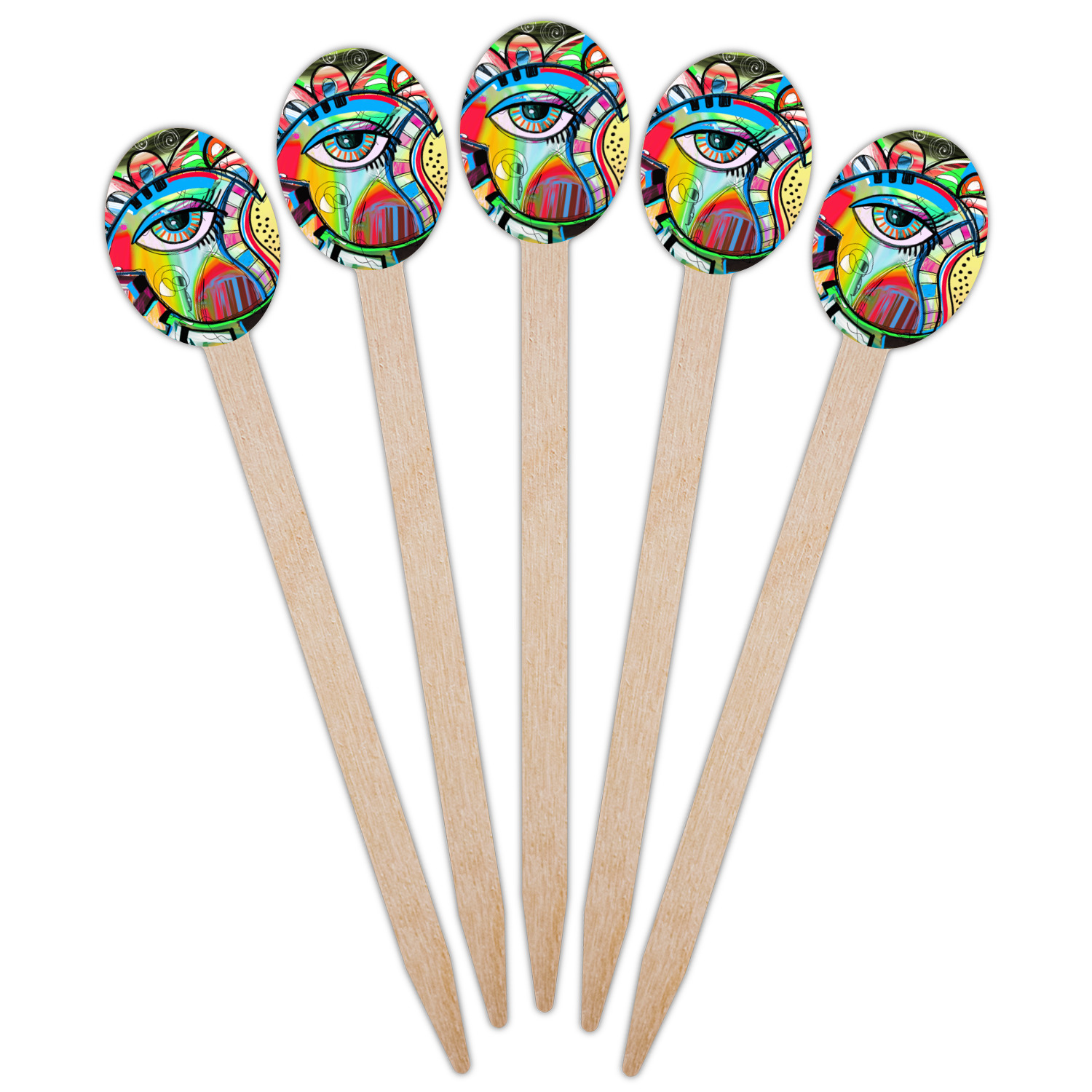 This design features a large abstracted eye in the center, surrounded by extremely vibrant, surrealistic shapes.