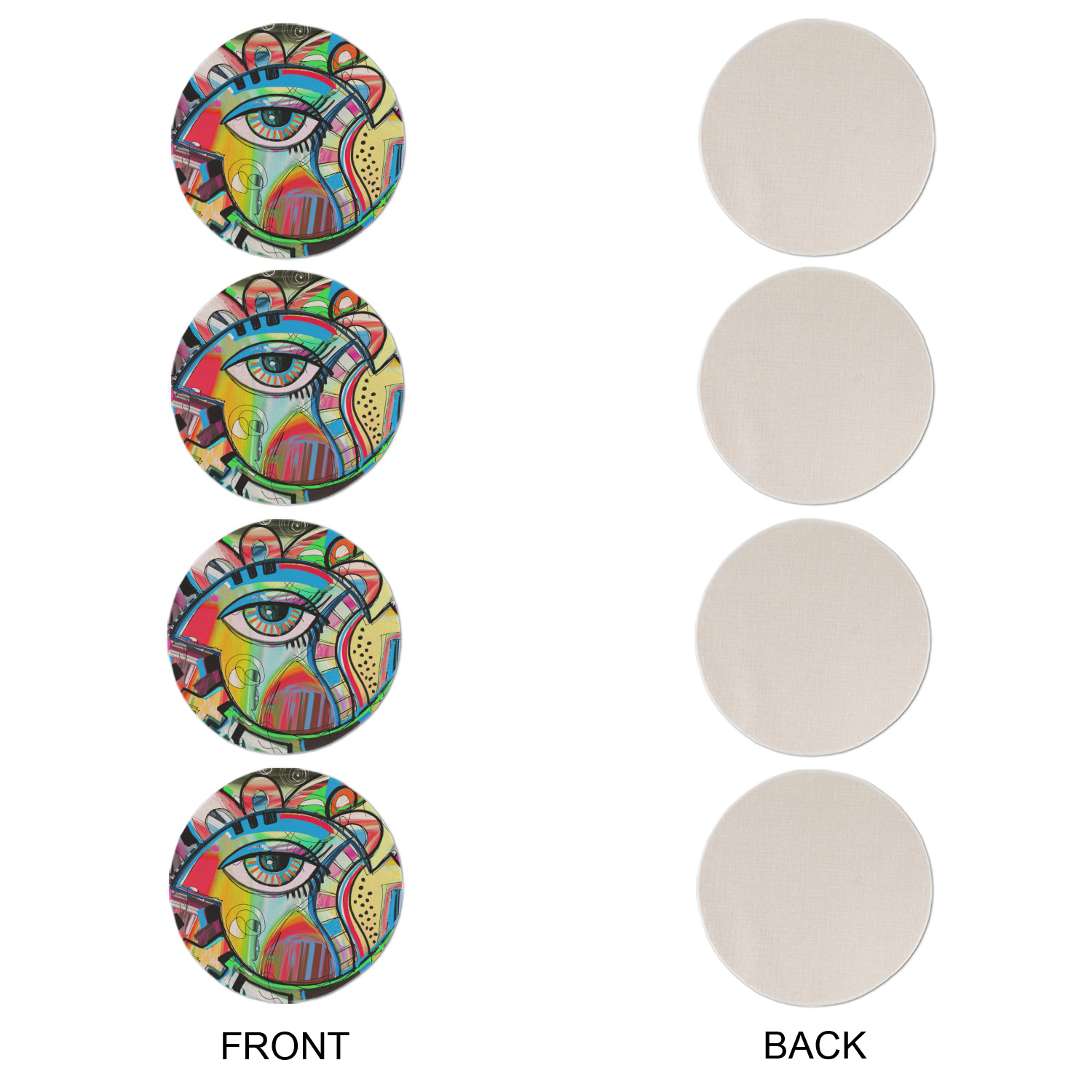This design features a large abstracted eye in the center, surrounded by extremely vibrant, surrealistic shapes.