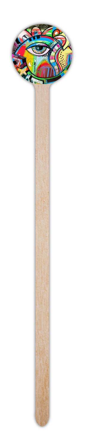 This design features a large abstracted eye in the center, surrounded by extremely vibrant, surrealistic shapes.
