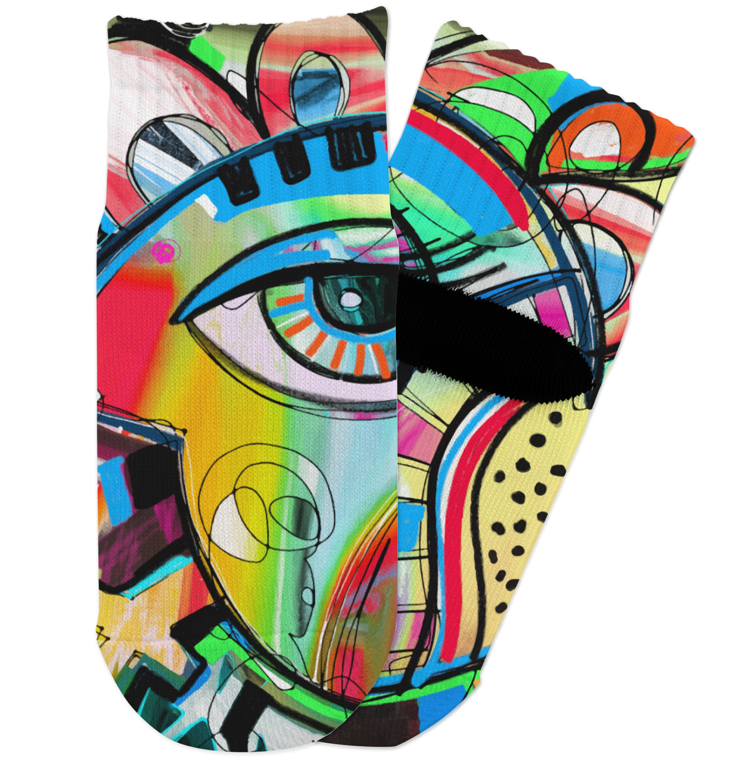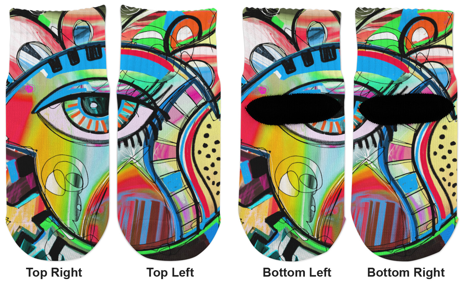 This design features a large abstracted eye in the center, surrounded by extremely vibrant, surrealistic shapes.