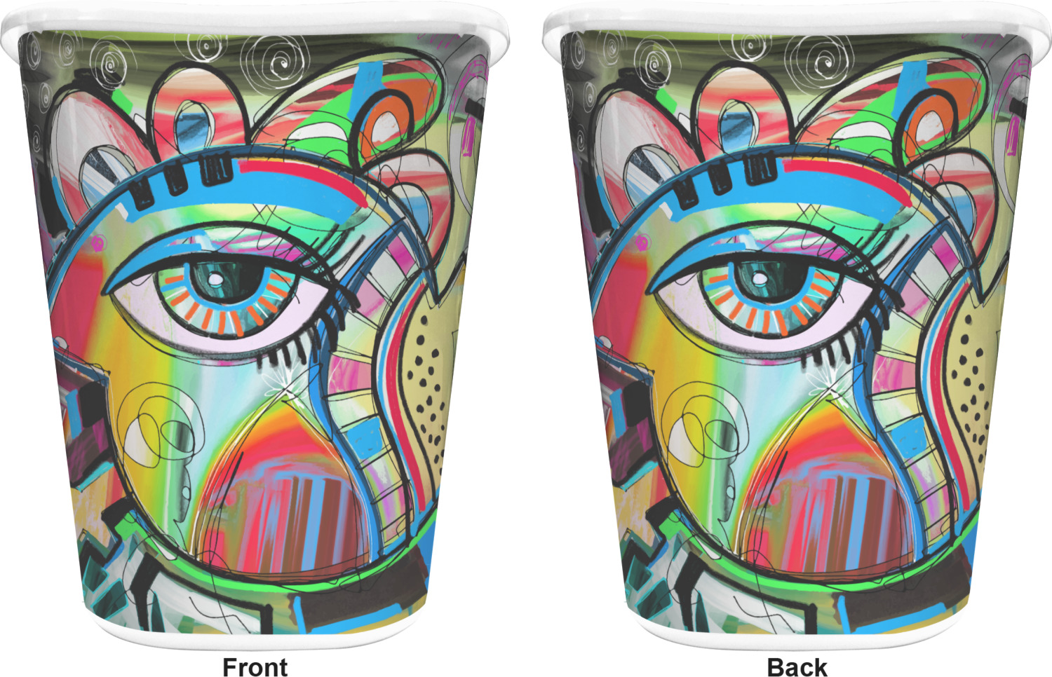 You can choose to purchase these decorative wastebaskets in either a white or a black color that will show on the base and the upper rim. Your customization is printed on a high-gloss, fine-quality vinyl adhesive, and you can choose to either have this adhesive applied to one side only or to both sides. As such, this plastic wastebasket can be single-sided or double-sided, depending on your creative vision. Your customization is printed using durable inks, making the design waterproof and resistant to fading over time.