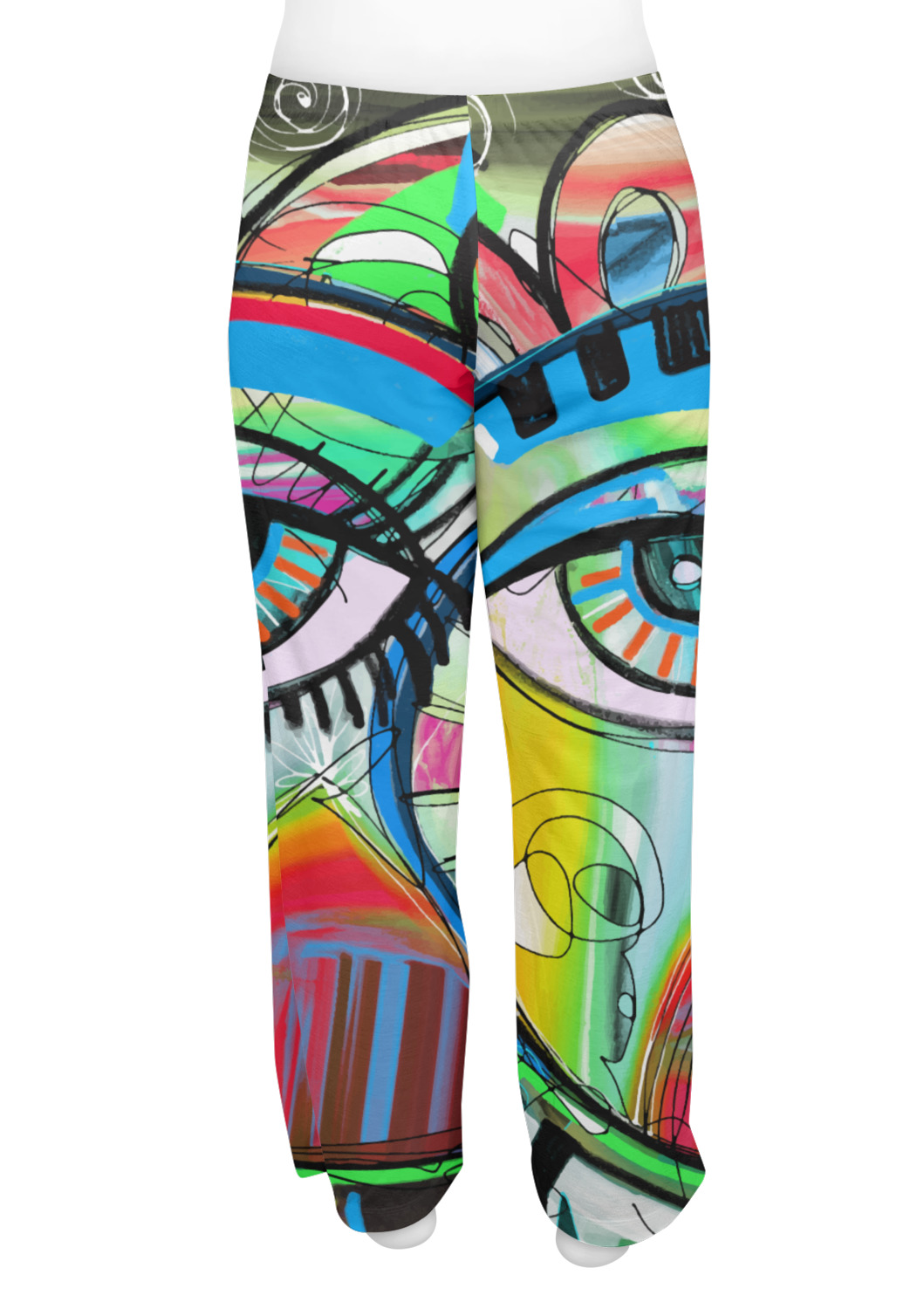 This design features a large abstracted eye in the center, surrounded by extremely vibrant, surrealistic shapes.