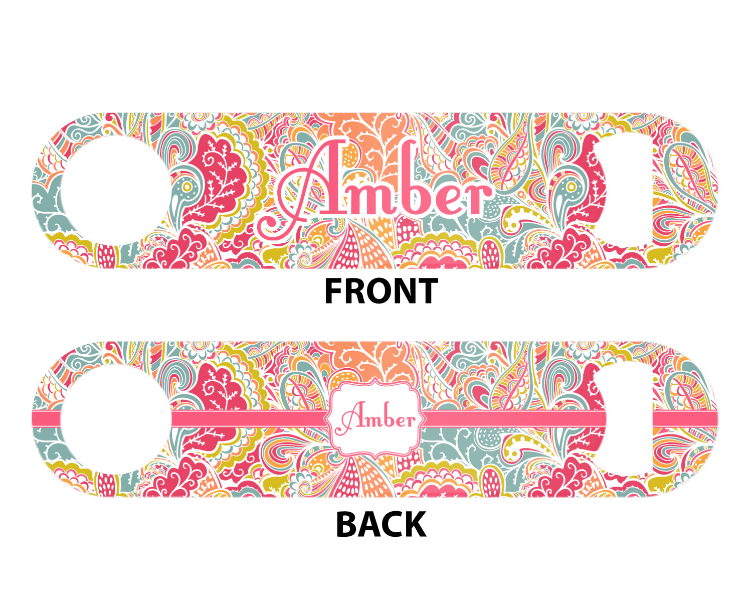 Made from stainless steel, these beer bottle openers are 7 by 1.625 inches, giving you plenty of leverage when trying to open a stubborn bottle. On one end of this personalized bottle opener, you'll find a circular hole for you to hang and display your opener. On the opposite end, you'll find the tool used for opening bottles. This opener in particular has the same structure and style as professional bartender bottle openers. Your customization is sublimated onto both the back and front, and both sides can be customized individually. Choose from one of our two base colors - white or silver.