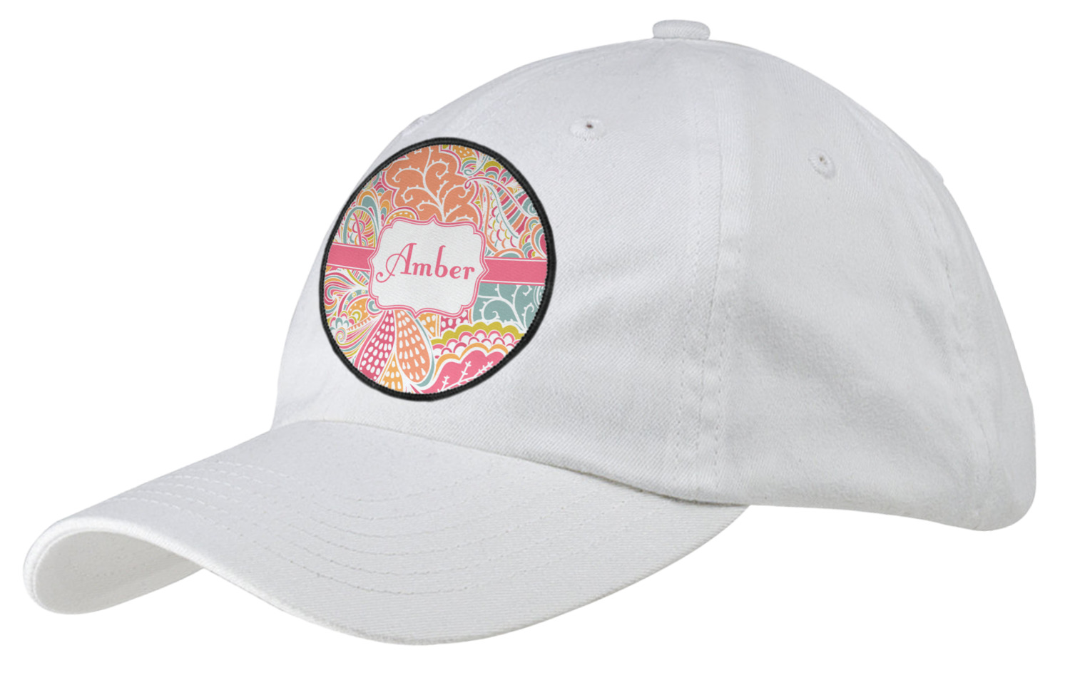 A pink ribbon with white stitching attached to a decorative white label trimmed in pink ties the entire design together. Add personalization of your choice in a coordinating color to make this pattern even more special.