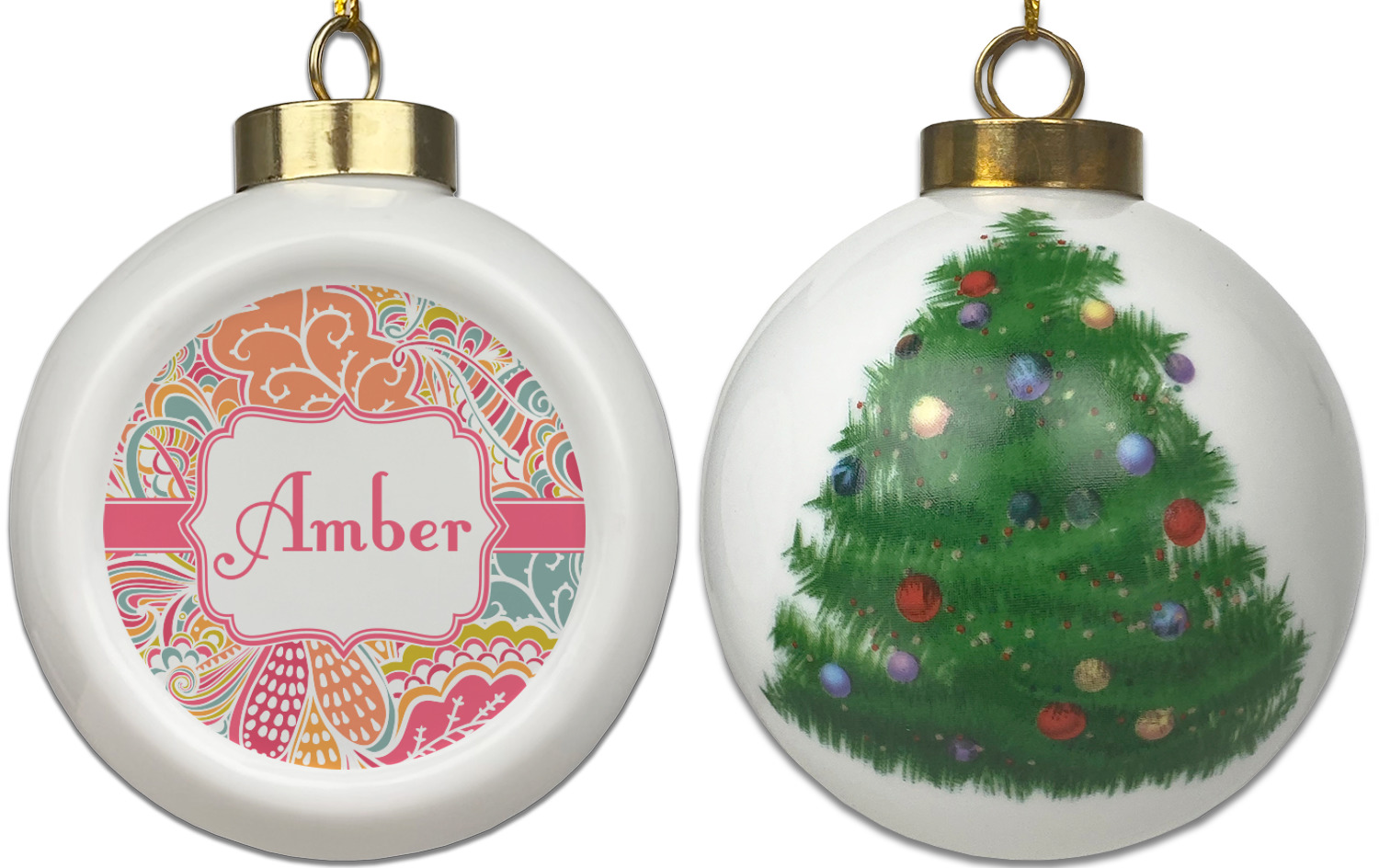 Our Christmas ornaments are a unique ceramic ball shape with a twist as it has a flat face to display your custom design! Select from one of our two design types - Christmas Tree or Poinsettia Garland - to adorn the curved back of your personal design. Each ornament measures 3H x 2.5W x 2D accompanied with a gold string accent for finishing touches to hang on your beautiful Christmas tree!