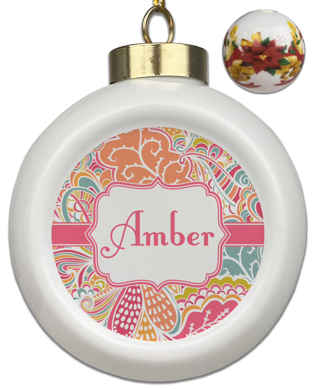 Our Christmas ornaments are a unique ceramic ball shape with a twist as it has a flat face to display your custom design! Select from one of our two design types - Christmas Tree or Poinsettia Garland - to adorn the curved back of your personal design. Each ornament measures 3H x 2.5W x 2D accompanied with a gold string accent for finishing touches to hang on your beautiful Christmas tree!